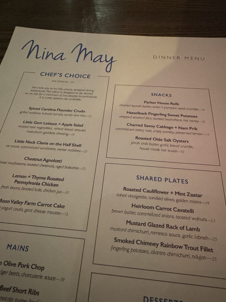 Nina May, a New American restaurant located in Washington, DC, offers a diverse menu with vegan and limited vegetarian options. The restaurant provides a range of utilities, from outdoor seating to happy hour specials. Customers rave about the exceptional service and passionate staff. From the cozy ambiance to the delicious food, Nina May delivers a memorable dining experience. Standout dishes like the French toast, smoked chimney rainbow trout fillet, and white kidney bean falafel receive high praise. The carefully curated cocktails and creative menu items showcase the restaurant's dedication to quality ingredients and flavors. Whether hosting an event or enjoying a casual meal, Nina May impresses with its impeccable service and delectable dishes. Stop by to experience the intimate and classy atmosphere while indulging in a delightful dining experience.
